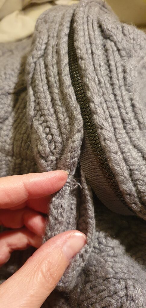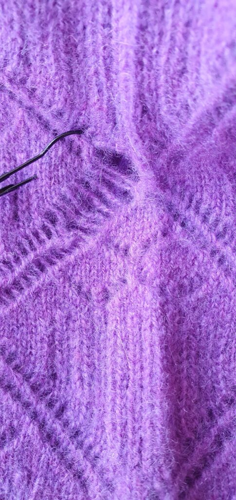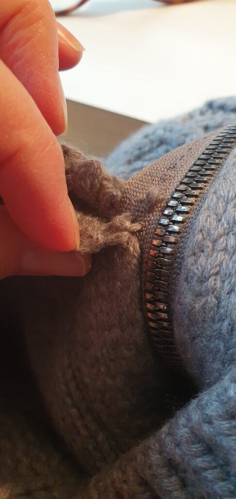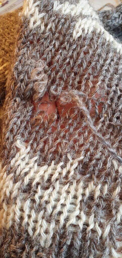 Jeg laver lapninger, der er så lidt synlige som muligt i både fin og kraftigere strik. Jeg har repareret en del i cashmere og fin merino.